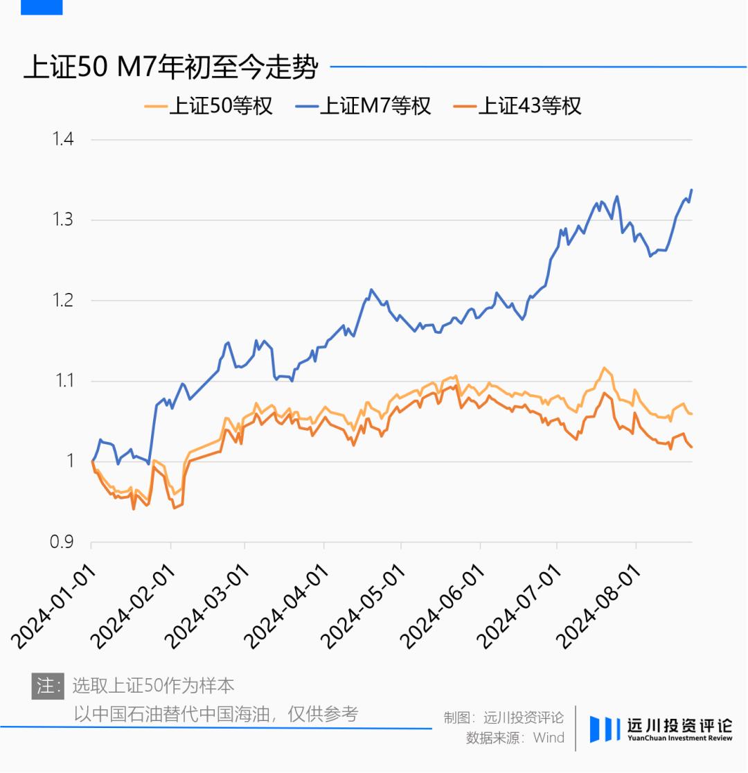 某种程度上,A股今年以来和美股极其相似:四大行+长电+中海油+中移动构成的A股七巨头,撑起了指数表现的半边天,尤其四大行涨势一骑绝尘,在一片哀嚎中走出历史新高的行情。