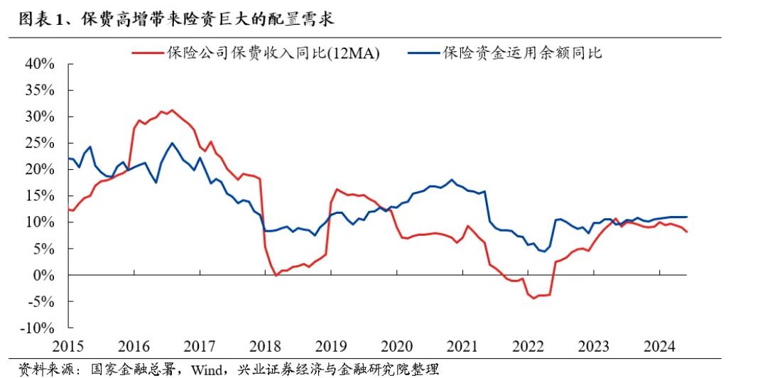 公募和私募缩水的另一面,险资负债端保费收入持续增加。据金融监管总局数据,截至2024年6月底,今年保险业原保险保费收入总额达到了3.55万亿元,同比增长4.9%,保险资金运用余额达到了31万亿,同比增长10.98%。