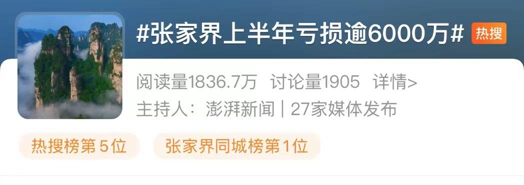 8月26日晚,A股上市公司张家界旅游集团股份有限公司(以下简称“张家界公司”)发布半年报后,冲上了热搜:
