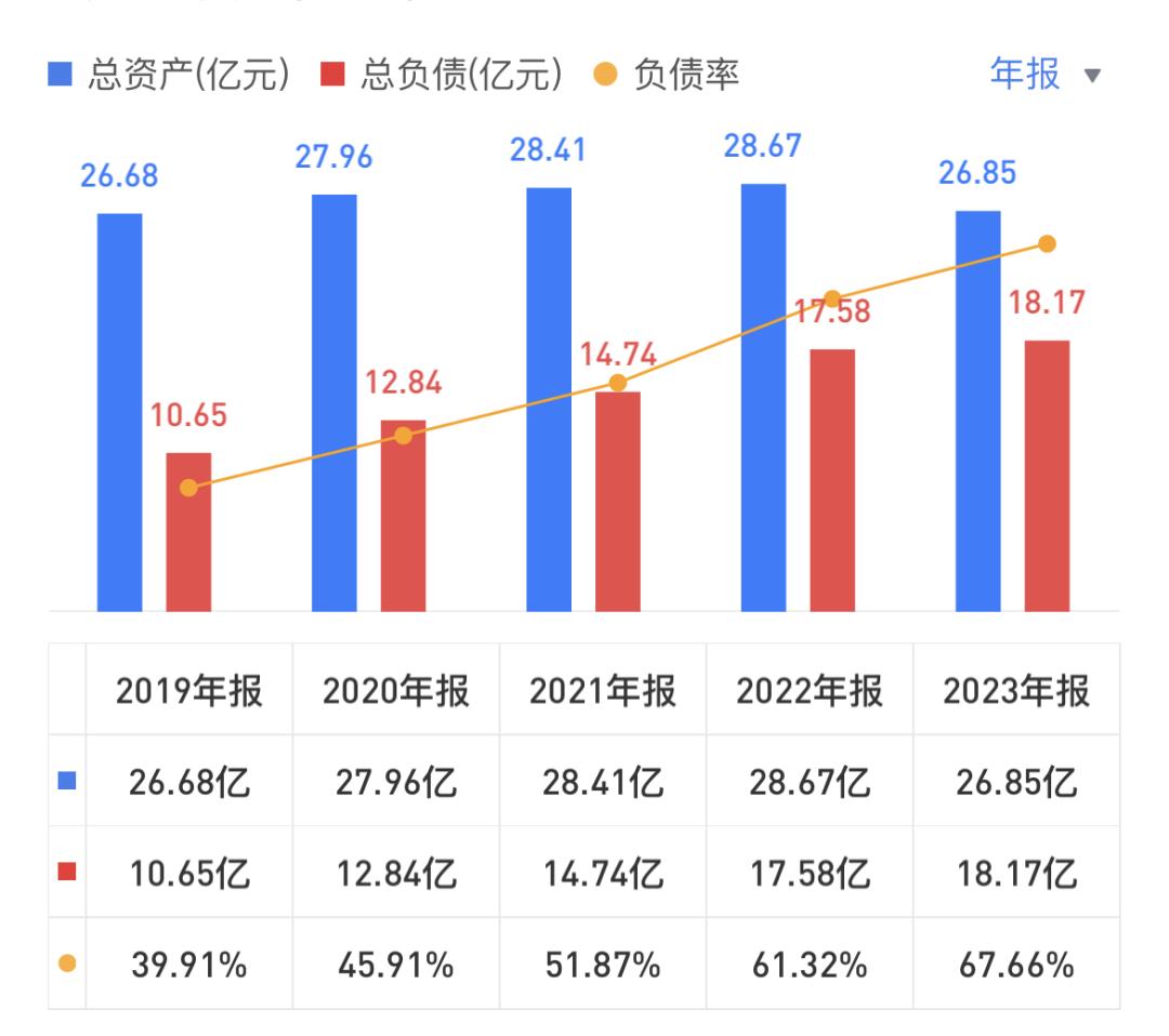 在近四年的年报中,张家界公司的负债率则越来越高,甚至在2023年达到了67.66%。