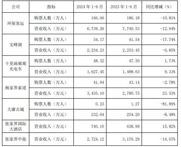 根据财报披露,在张家界公司旗下的主要景区中,今年上半年购票人数和营业收入实现同比双增长的,只有十里画廊观光电车。