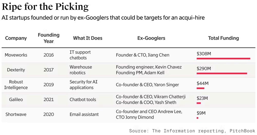 ▲The Information列出的5家可能被收购的谷歌系AI创企(图源:The Information)