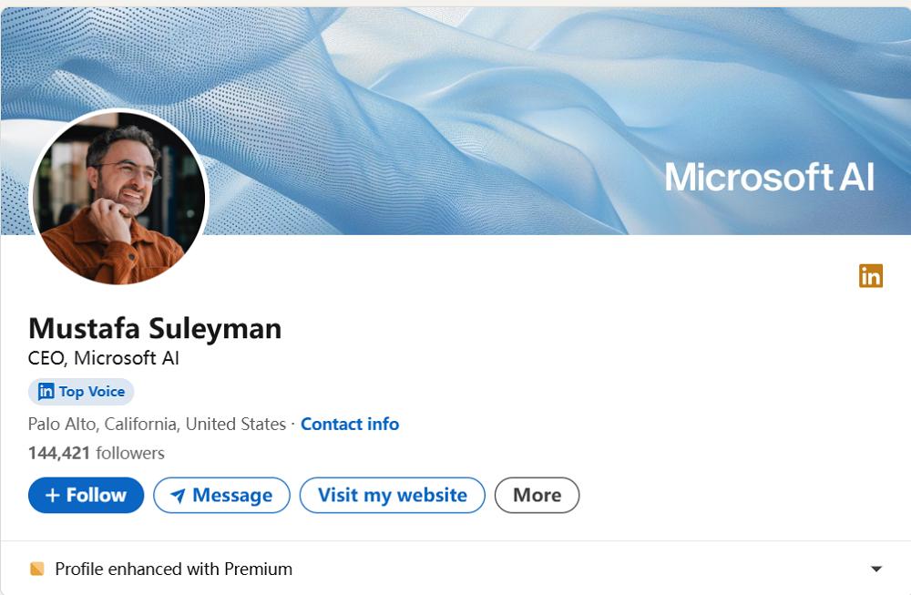 ▲Mustafa Suleyman已成为微软AI CEO(图源:领英)