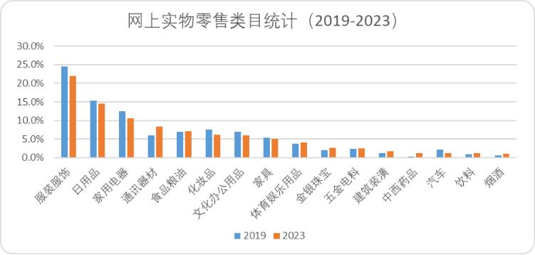 图:网上实物零售类目变化统计,来源:《中国电子商务报告》、星图数据