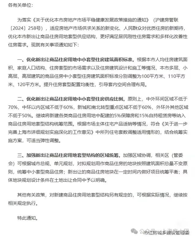 市场就是这样,有的消息全城知晓,有的消息非常低调,但是不妨碍它的重要,比如今天这条,关于上海调整整体的土地套型供应结构的政策: