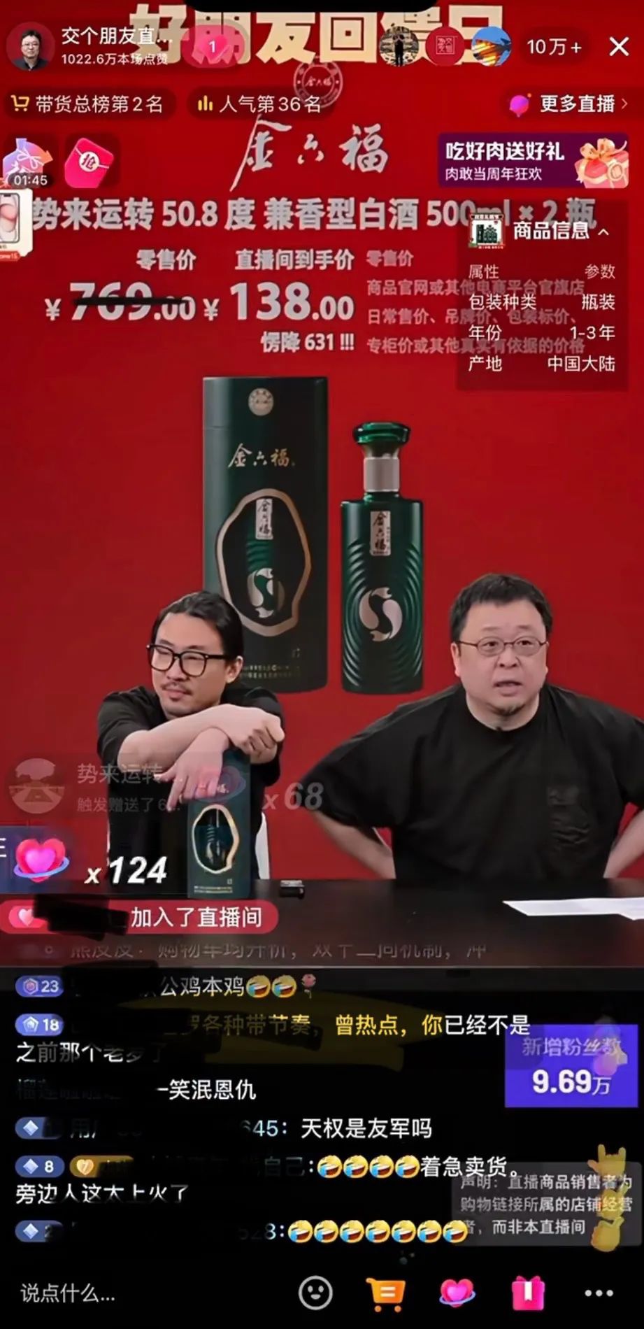 2022年10月20日,罗永浩发布朋友圈,显示入驻淘宝直播。随后,交个朋友与淘宝的合作逐渐升温,不仅推动旗下多名主播入驻淘宝直播,还频繁与淘宝官方互动。2023年618期间,罗永浩甚至在淘宝直播间卖出了一个价值200万元的国产商用卫星。