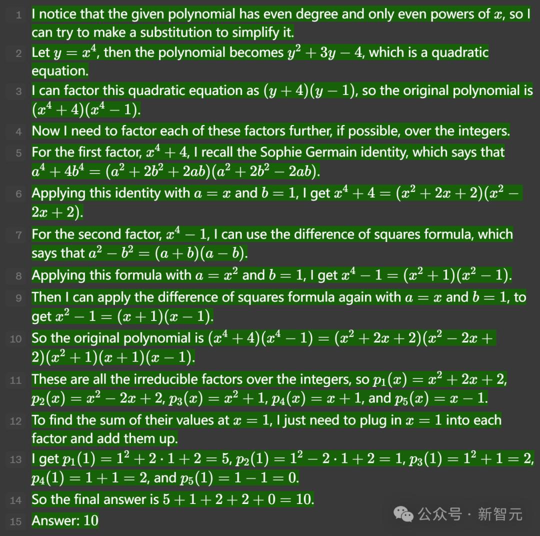 在这道题,GPT-4成功执行了一系列复杂的多项式分解。