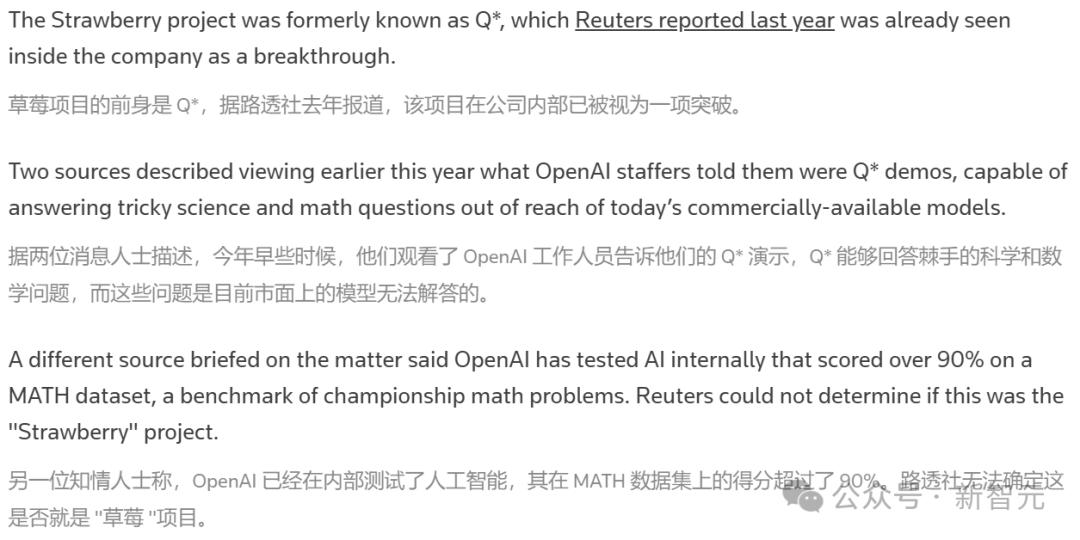 一个月前路透社曾报道,OpenAI内部测试了一种AI,在MATH基准上得分超过了90%。