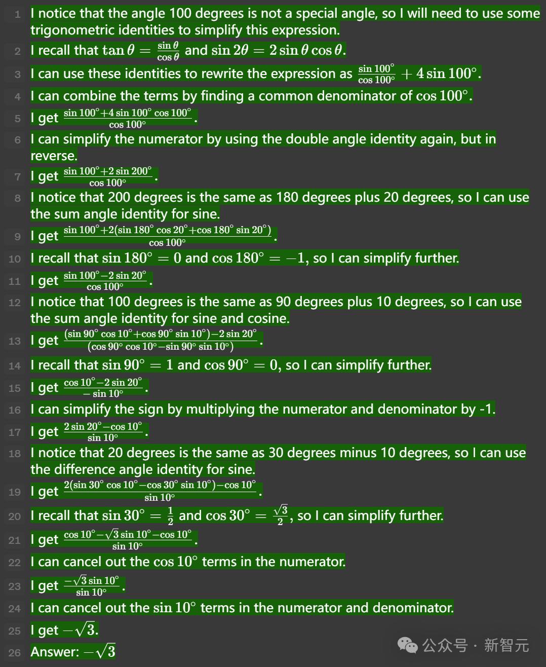 在最后这道题中,模型成功地应用了多个三角恒等式,来简化了表达式。