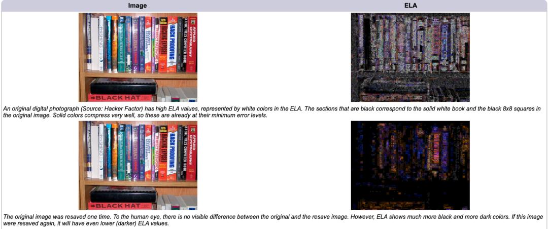 比元数据更深入的检测方法,其实早就有了,比如错误级别分析(Error Level Analysis),简称 ELA 算法。