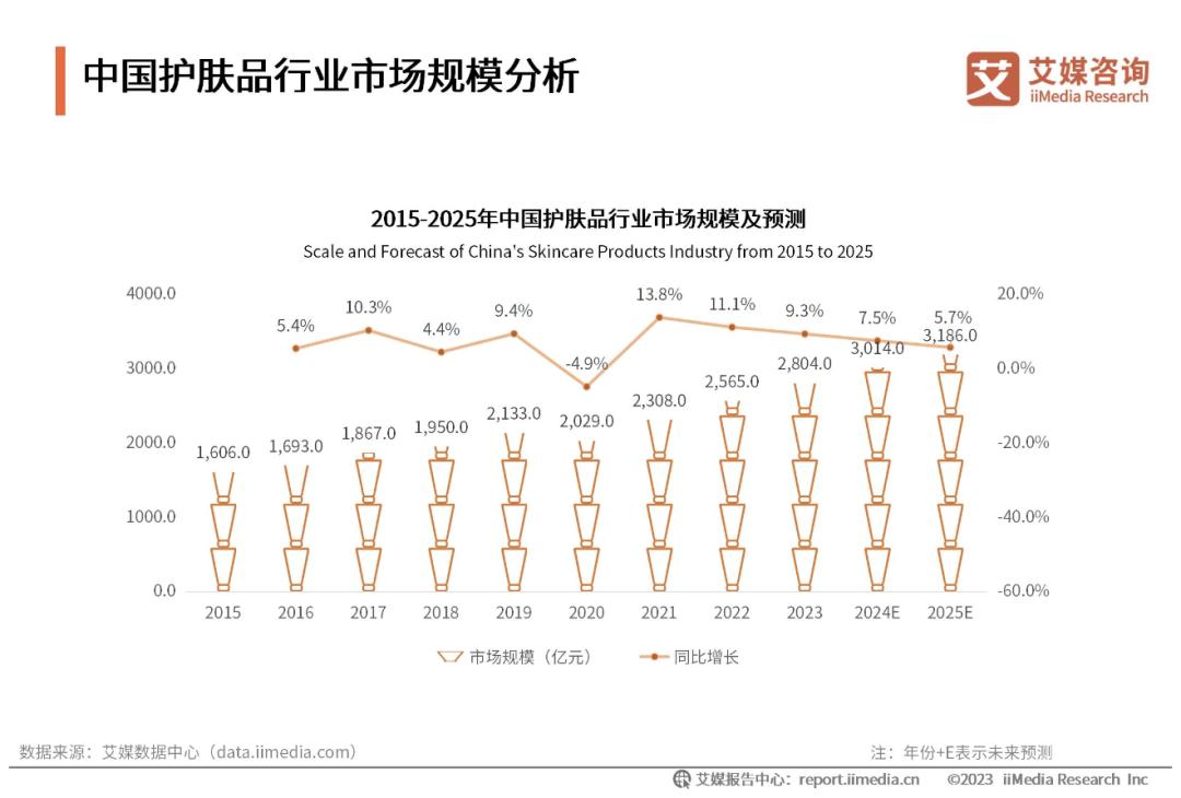 在细分赛道中,比如护肤领域,艾媒咨询数据显示,中国护肤品行业2023年市场规模为2804.0亿元,同比增长9.3%。消费者护肤意识日益增强,护肤品消费理念也在不断更新,对保湿、滋润、美白、防晒等基础护肤需求持续增长,对抗衰老、防皱等进阶护肤需求也日益关注。