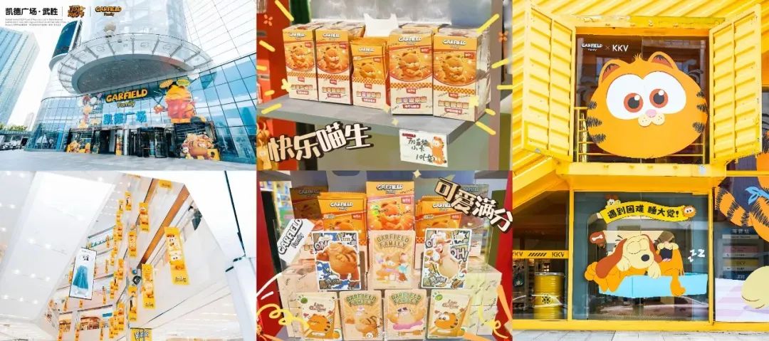 《加菲猫家族》在国内的商业授权活动早在影片预热阶段就已经开始,并随着影片热播持续推出。例如,上映前“加菲猫家族”与德克士的联名并在武汉凯德广场推出加菲猫家族中华首展;上映后,该IP又相继在成都太平洋影城王府井店开展快闪活动,在武汉落地首届加菲猫家族芝士主题派对,与KKV合作在全国推出7家联动主题店和15家打卡店,并与漫步者、神奇地带、集卡社等众多品牌合作推出相关联名周边。