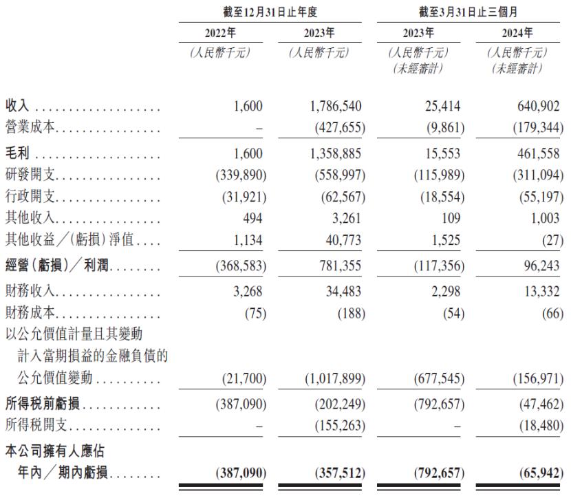 财务方面,2022年、2023年及2024年1-3月(简称“报告期”),映恩生物分别确认收入160万元、17.87亿元、6.41亿元。