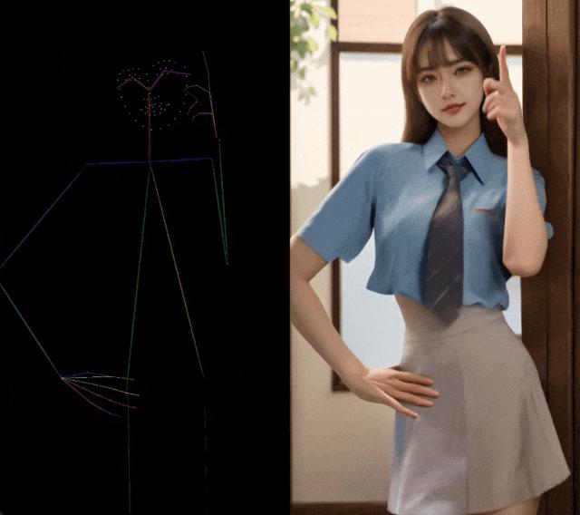 在视频生成模型 SVD 中,ControlNeXt 实现了对人体姿势动作的整体控制,尤其连手指动作的模仿都非常精准。