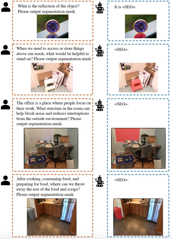 结果表明,LISA 在训练中仅使用不包含复杂推理的分割数据,就能在推理分割任务上展现出优异的零样本泛化能力,并在使用额外的推理分割数据微调后让分割效果更上一个台阶。