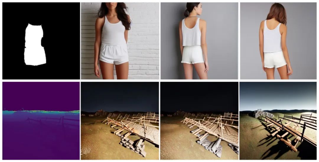 ControlNeXt 还支持掩模(mask)和景深(depth)条件控制,下图分别为 SD 1.5 中掩模与景深可控生成效果,很有一笔成画的味道。