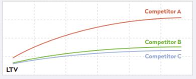 而AiX则能够根据游戏不同竞争对手的 LTV 情况分析得出 LTV 预测,进而通过支付意愿和购买力进一步推导预测游戏在不同国家或地区的LTV表现预测。并根据游戏实际上线后的LTV真实表现,不断优化矫正远期更准确的LTV预测,让团队时刻心中有数,运营更加从容。