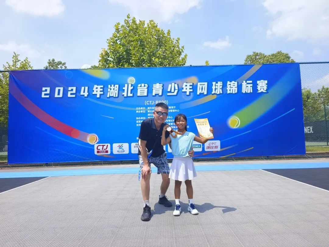 就在前不久,在湖北省举办的2024年青少年网球锦标赛中,陈千与刚获得了女子U10组的单打亚军和双打季军。