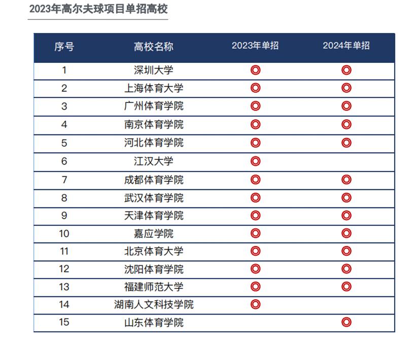 以高尔夫球为例,《中国青少年高尔夫球发展报告(2023)》显示,2021至2023年,全国有14所院校设立高尔夫球单招项目,3年的录取率分别为44%、54%和48%。