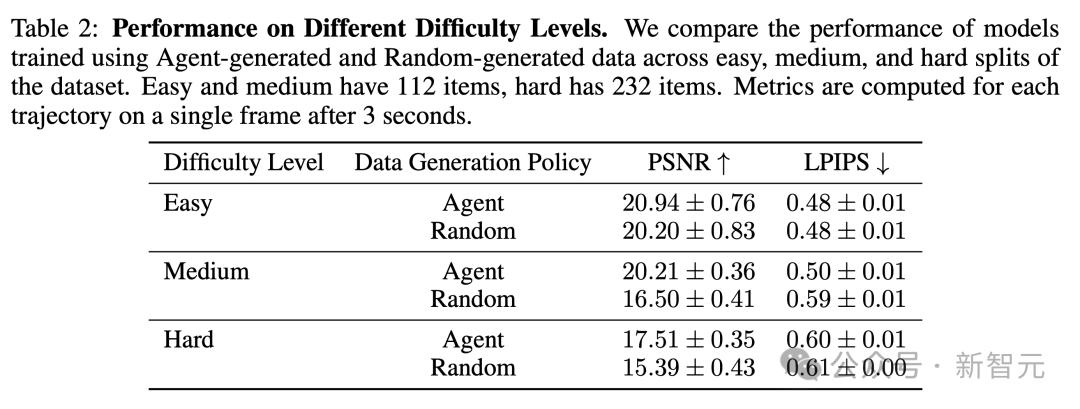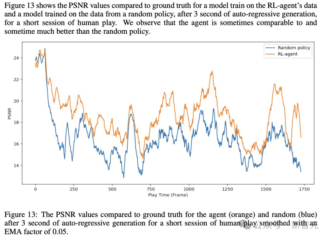 而在比较单帧生成时,智能体仅略胜一筹,达到25.06 PNSR,而随机策略为24.42。