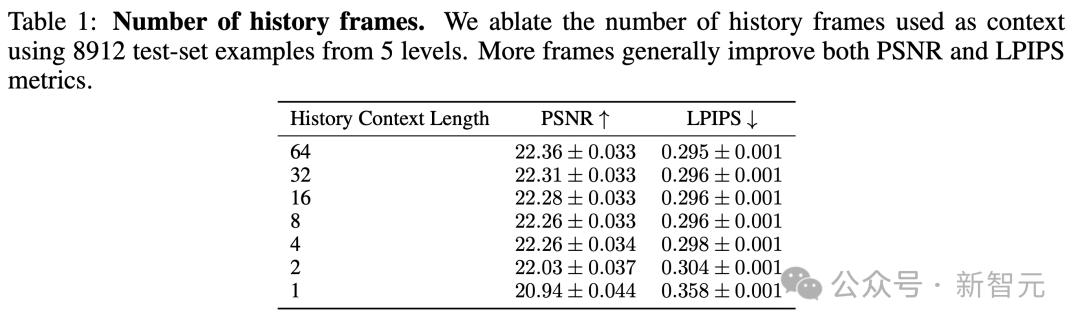 即便用上了最大上下文(64帧),GameNGen模型也仅能访问,略超过3秒的历史信息。