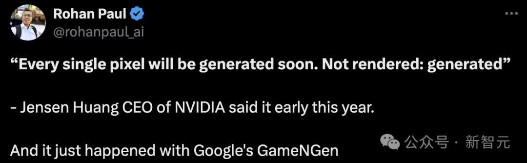 GameNGen或许标志着游戏引擎全新范式的开启,想象一下,和自动生成的图像或视频一样,游戏也是自动生成的。