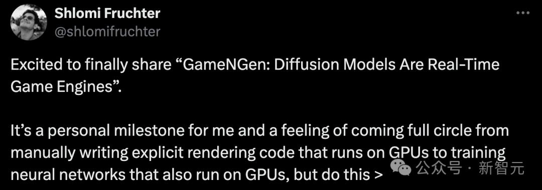 他表示,「GameNGen是自己开发路上的里程碑」。