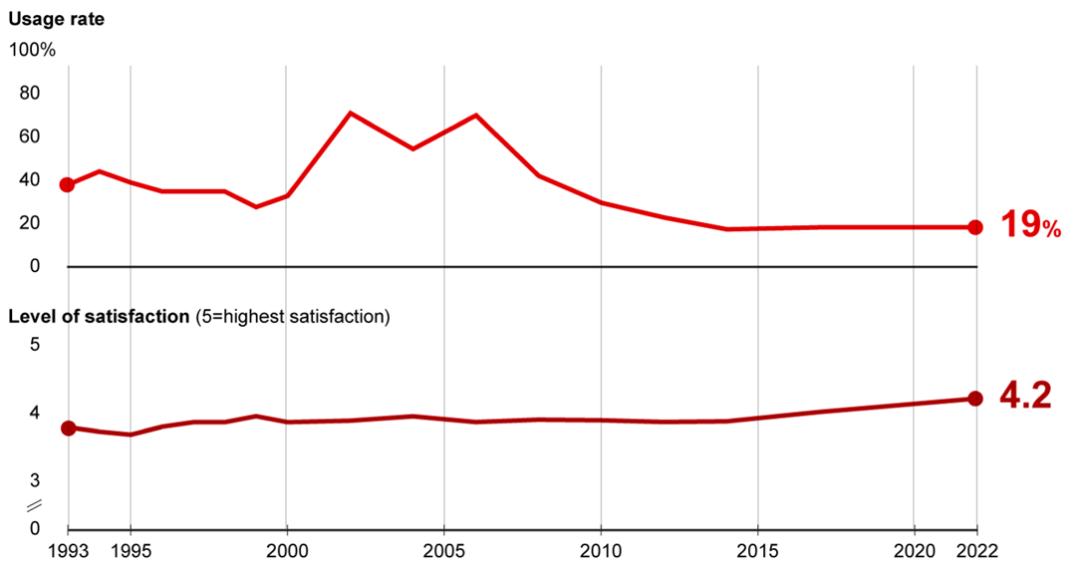 情景规划作为战略管理工具的使用和满意度趋势(来源:贝恩公司[7])