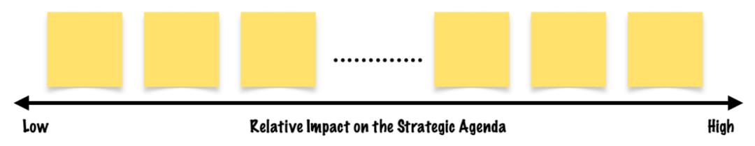 虽然这是一个可选的研讨会,但这里的关键思想是确定一套有助于组织进步的可管理策略。被发现分散核心目的(商业/商业理念理论)的目标和战略可能会从战略议程中删除。