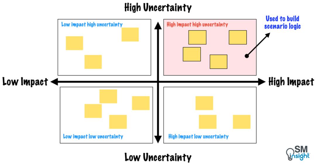 根据场景的时间范围,政治周期、技术转变等因素可以引发战略洞察力。