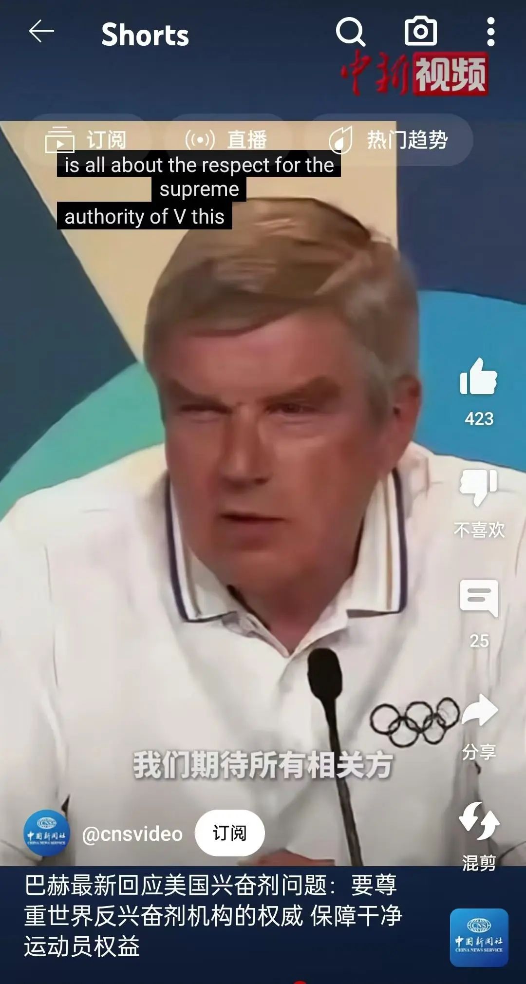 听着是不是也挺强硬的?再仔细翻翻外面传播的比较多的,巴赫另一天关于兴奋剂问答的原文 表述是“is all about the respect for the supreme authority of WADA”。不痛不痒地说“尊重最高权威”,和稀泥人设不倒。