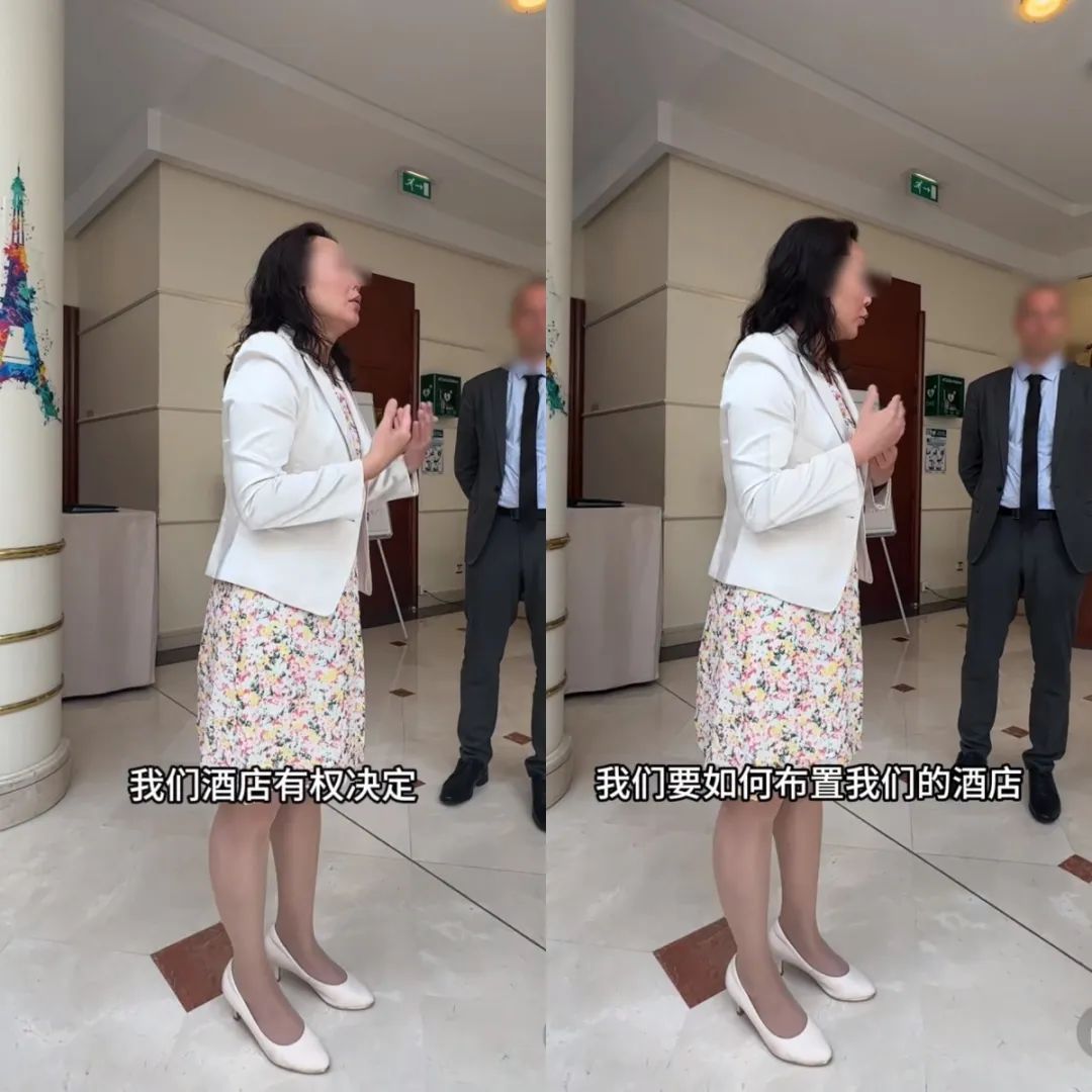 自媒体去做交涉,并拍了很清楚的视频。画面里的一位高管强调:我们酒店有权利决定,我们要如何布置我们的酒店。