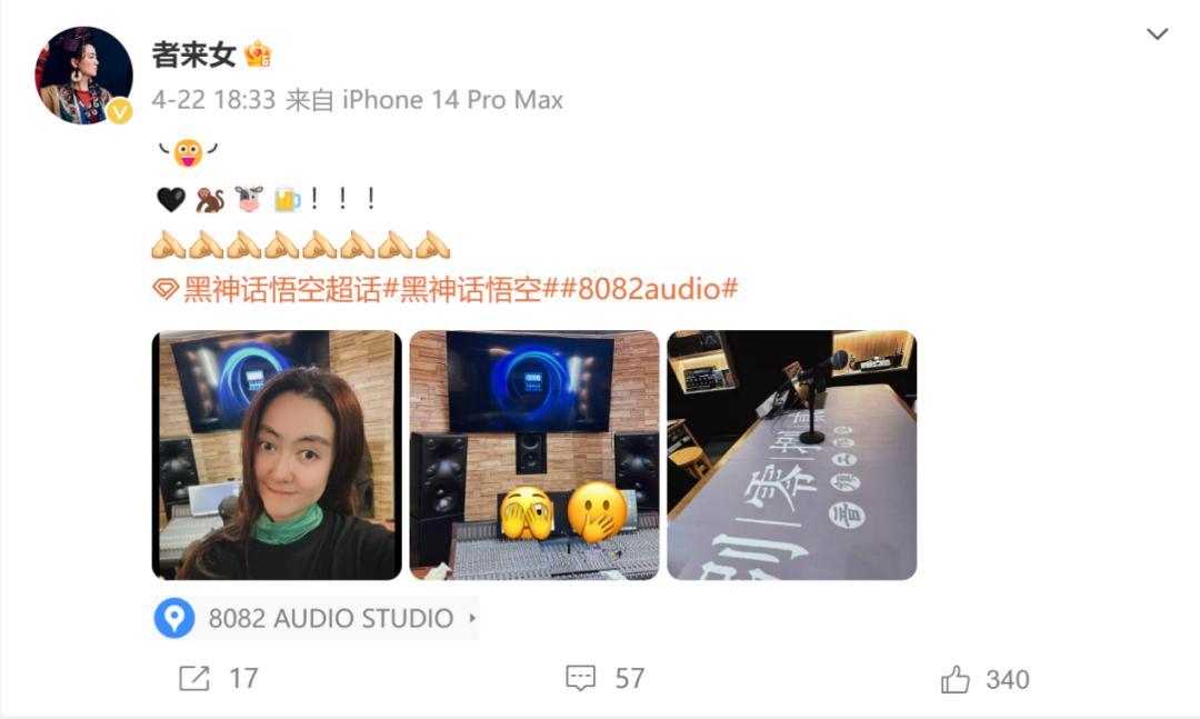和王国豪杰一样,者来女2021年就为《黑神话:悟空》录制了歌曲,等待了三年才看到最终的合成效果。者来女激动地表示,主题曲《屁》配合上游戏中精美的动画,态度和张力都是非常契合的。