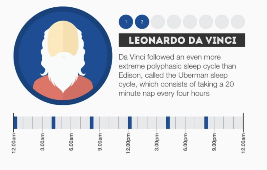 你可能听过一些缩短睡眠时间的神奇偏方,其中一个广为流传的就是“达芬奇睡眠法”,说的是人可以每过几个小时睡20分钟,通过少量多次的方法来满足睡眠需求,就能多出大把时间来做别的事了。所以这个方法到底能用吗?