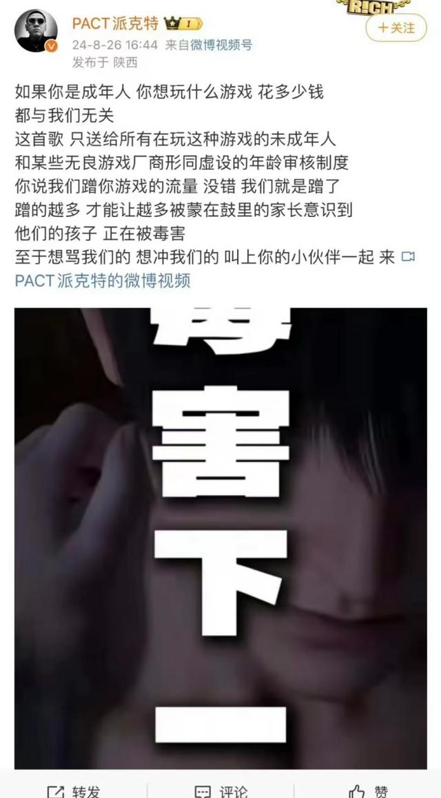 近日,说唱歌手派克特发布歌曲“diss”乙女游戏《恋与深空》,称该乙女游戏“全是擦边和油腻”“毒害下一代”。