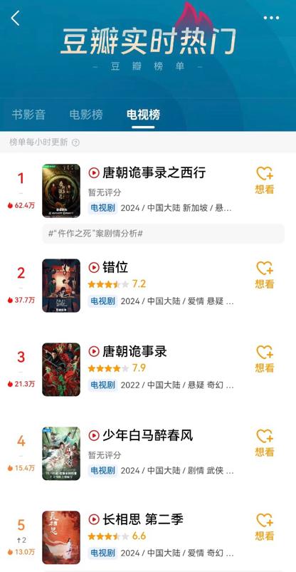 前述可见,好内容的稳定储备始终是平台的核心竞争力。一旦出现如《唐诡西行》这类国民量级,凭一己之力改变整个档期趋势走向的作品,后续的作品从品质到创新都必须跟得上,才能保证在高位运行的基础继续向上突破天花板。