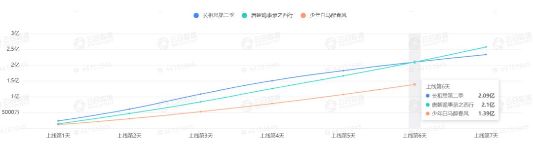 同期,优酷、爱奇艺和腾讯视频无一例外将目光对准了古装+剧二代:《少年白马醉春风》是《少年歌行》的前传,《唐朝诡事录之西行》是《唐朝诡事录》故事宇宙中的新版图,《长相思2》则是《长相思》的故事延续。