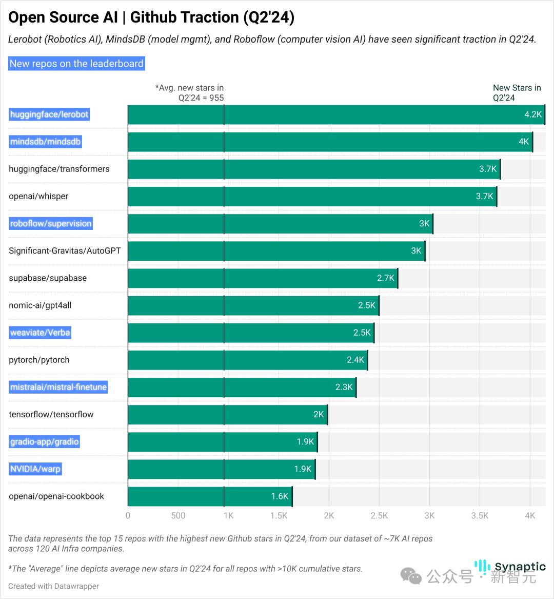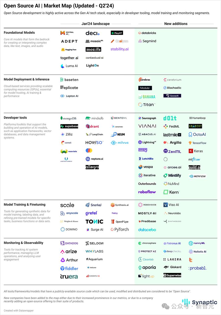 2024年,参与开源AI的参与者数量激增,新的参与者如Neum AI和Patronus AI进入了这一领域,而像Vian AI这样的老牌参与者也为其用户提供了开源工具包。