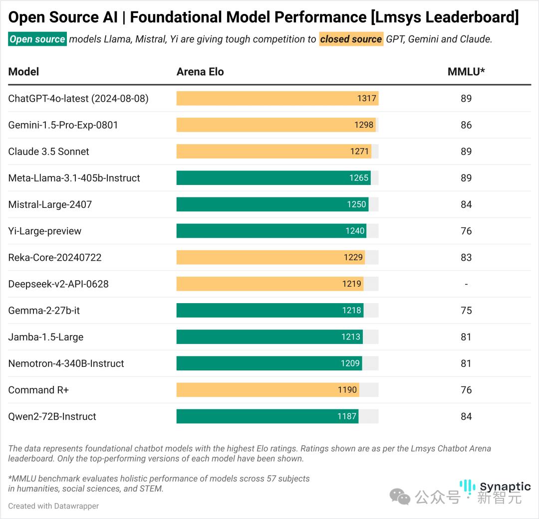 如今,开源和闭源模型之间的基准差距现在比以往任何时候都要小——Meta Llama和Mistral在MMLU上的表现几乎与GPT-4o相同。