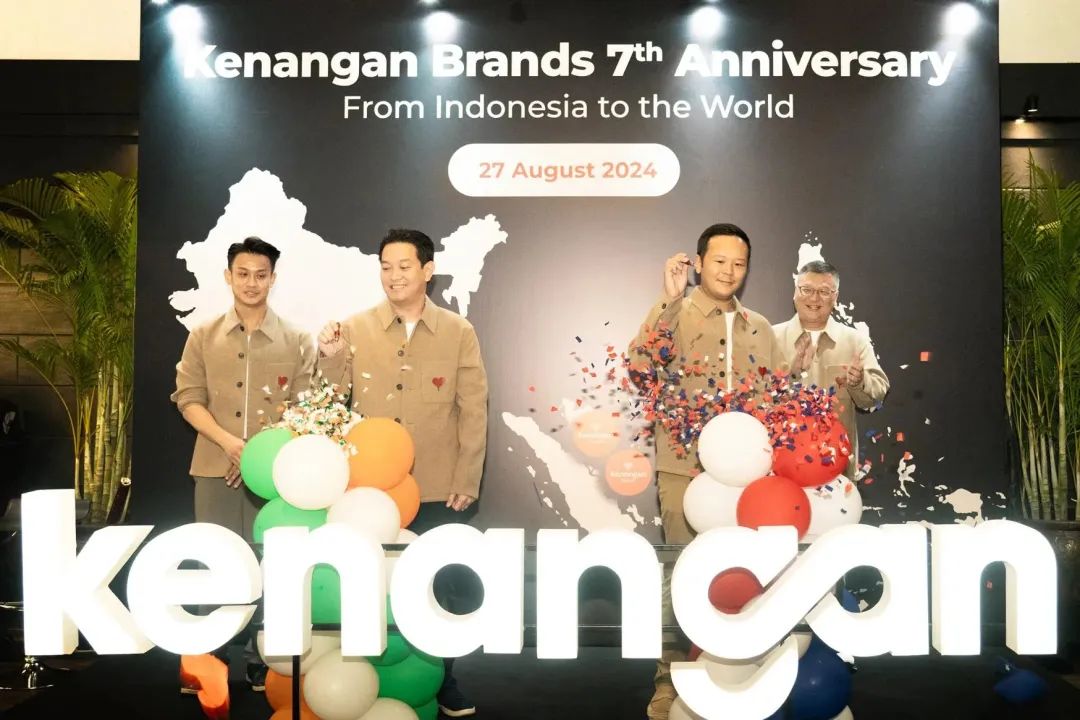 2024年8月27日,Kopi Kenangan联合创始人兼集团首席执行官爱德华·蒂尔塔纳塔(左三)和联合创始人兼首席业务发展官詹姆斯·普拉纳托(左二)出席Kenangan品牌7周年庆典。图片来源:Kopi Kenangan