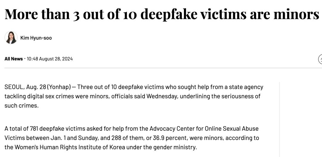 然而,这件事情还是Deepfake在韩国泛滥的冰山一角。