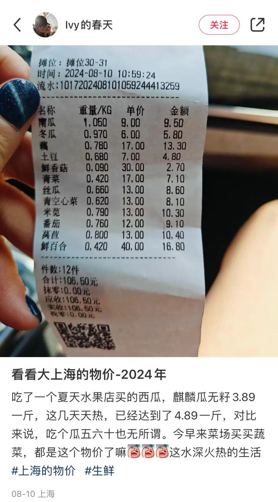被“刺”的买菜人。(图/小红书@Ivy的春天)