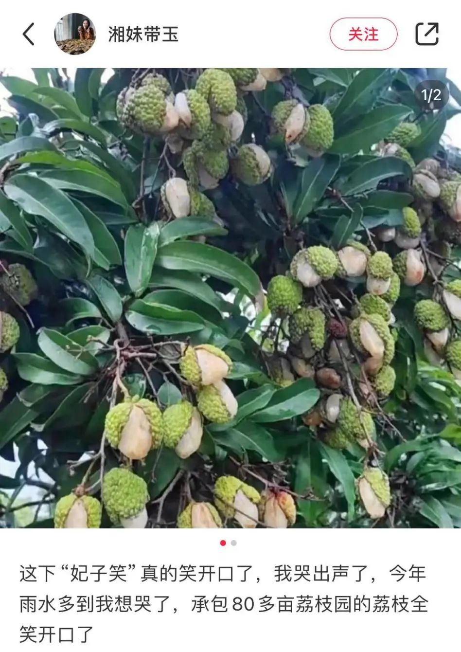 今年的多雨对荔枝造成毁灭性打击。(图/小红书@湘妹带玉)