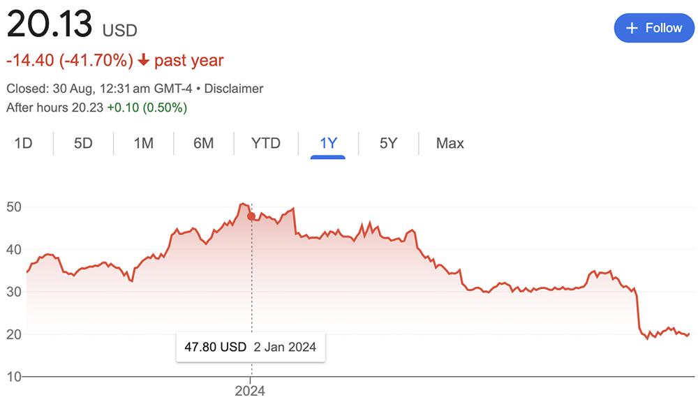 英特尔今年以来股价下跌近60%