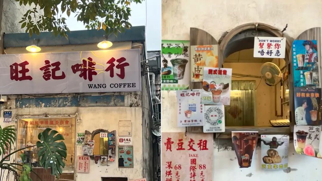 广东东莞的旺记啡行,由老旧平房改造而成,只有十几平,斑驳的水泥墙年代感满满。