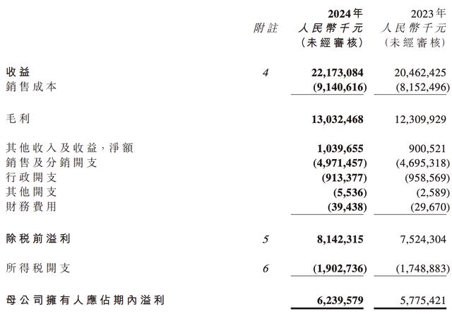 8月27日晚,农夫山泉披露了2024年中期业绩报告,财报显示,上半年公司营收221.73亿元,同比增长8.36%;实现归母净利润62.40亿元,同比增长8.04%。
