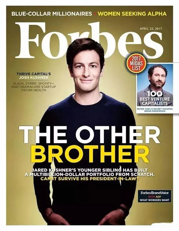 30岁不到的时候,约书亚·库什纳就被《福布斯》评为30位30岁以下最具影响力的人物,有钱有势的顶级高富帅。