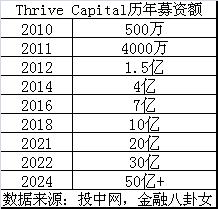 而这十几年内,Thrive Capital也收获了一轮又一轮的募资,累计募资额就超过113亿美元。