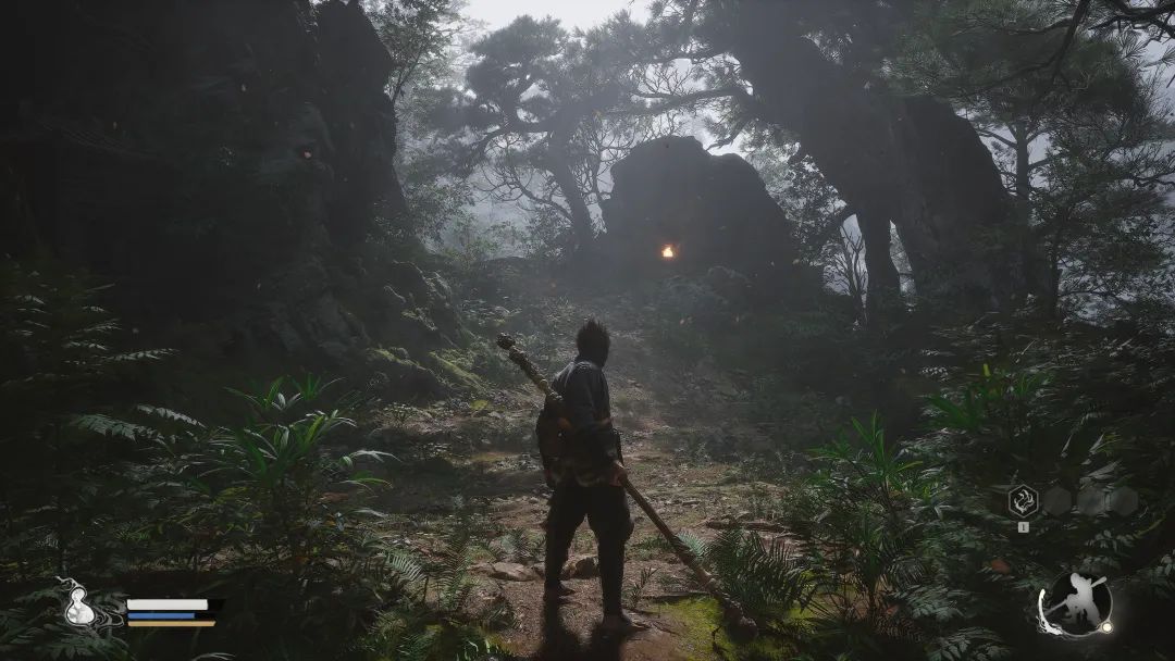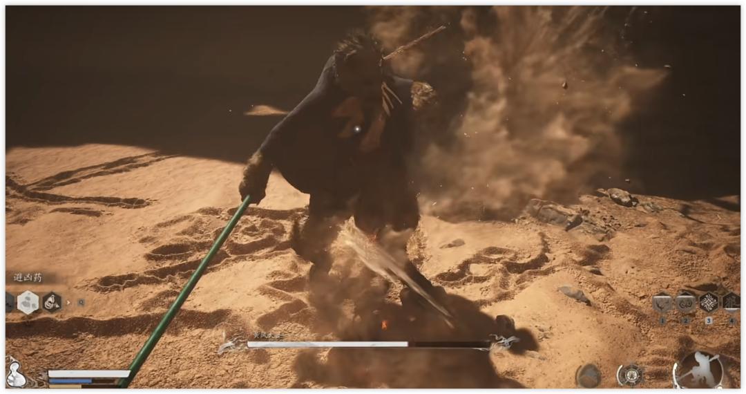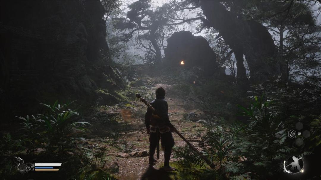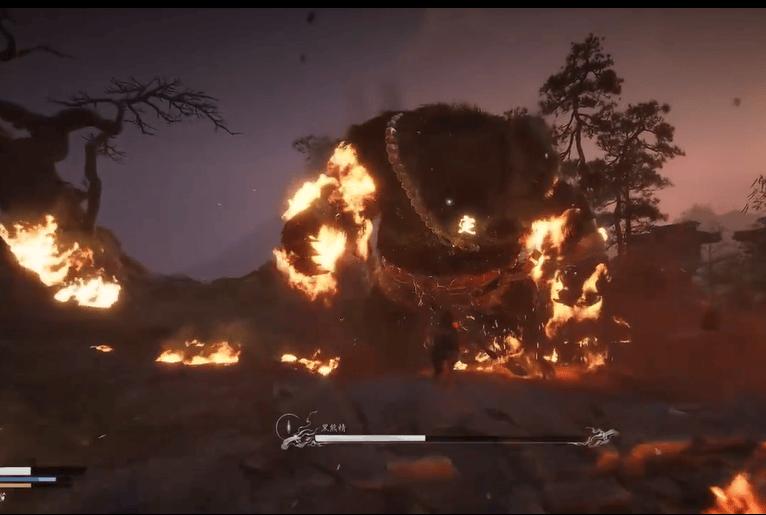而且我们当时对比的是第一章的前两个小地图,负载相对更小,到后面玩的时候,到了和关卡最终 BOSS 黑熊精大战的地方,尤其当对方二阶段改变地形冒火时,PS5 的帧数更是进一步下降,非常难受。后面的黄风怪也是如此。