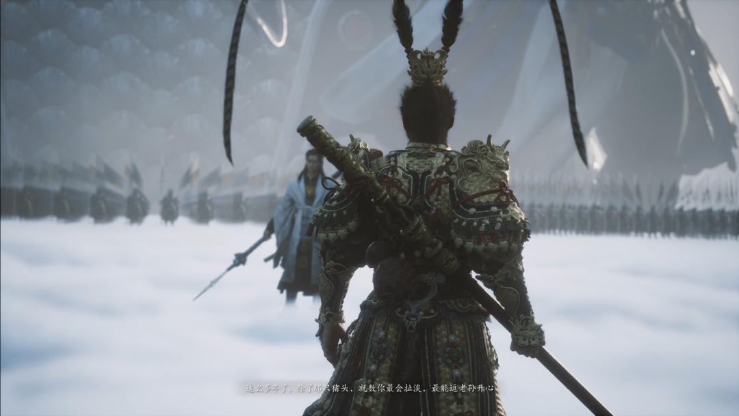 比如,PC 端优势明显,人物毛发丝丝分明、铠甲装饰丰富、脚下的云朵质量与密度充盈饱满、充当背景板的十万天兵天将也清晰可见,而 PS5 这边已经发糊变虚。